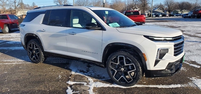 JUST IN * Take a look! NEW 2025 Traverse High Country AWD in Iridescent Pearl Tricoat, SUPERCRUISE, full moonroof, surround vision cameras, and a full safety suite. OWNER BENEFITS • 3 YEAR/36,000 MILE* BUMPER-TO-BUMPER LIMITED WARRANTY • 5 YEAR/60,000 MILE* POWERTRAIN LIMITED WARRANTY, ROADSIDE ASSISTANCE & COURTESY TRANSPORTATION • FIRST MAINTENANCE VISIT *WHICHEVER COMES FIRST SEE CHEVROLET.COM OR DEALER FOR TERMS, DETAILS & LIMITS PERFORMANCE & MECHANICAL • TIRE, COMPACT SPARE • SUSPENSION, SPECIAL RIDE AND HANDLING • WHEEL, SPARE, 18 STEEL CONNECTIVITY & TECHNOLOGY • KEYLESS OPEN AND START • REMOTE VEHICLE START • ADAPTIVE CRUISE CONTROL • BOSE AUDIO PREMIUM 10 SPEAKER • 8 YEARS ONSTAR BASICS SEE ONSTAR.COM FOR TERMS • 3 YEARS SAFETY SERVICES, WI-FI, IN-VEHICLE-APPS, CONNECTED BY ONSTAR; INFO AT ONSTAR.COM/PLANS • SIRIUSXM AUDIO W/TRIAL • WI-FI (R) HOTSPOT CAPABLE • GOOGLE BUILT-IN COMPATIBILITY • SUPER CRUISE, HANDS-FREE DRIVER ASSISTANCE SYSTEM • 17.7 DIAGONAL LCD DISPLAY • ACTIVE NOISE CANCELLATION • TIRE PRESSURE MONITOR SYSTEM • DRIVER INFORMATION CENTER, 11 DIAGONAL DISPLAY INTERIOR • SEATING, 7-PASSENGER • SEAT ADJUSTER, DRIVER 8-WAY • POWER-FOLDING 2ND & 3RD ROW SEATS, WITH 2ND ROW ONE-TOUCH FOLD • SEATS, HEATED REAR OUTBOARD • DRIVER & FRONT PASSENGER HEATED SEATS • SEATS, VENTILATED DRIVER AND FRONT PASSENGER • POWER OUTLET, 120-VOLT • STEERING WHEEL, HEATED, AUTOMATIC • STEERING COLUMN, POWER TILT & TELESCOPIC • WIRELESS PHONE CHARGING • TRI ZONE AUTO CLIMATE CTRL • MEMORY PACKAGE • UNIVERSAL HOME REMOTE • SEAT ADJUSTER, FRONT PASSENGER 6-WAY POWER • SEAT, REAR, 1-TOUCH FLAT-FOLD • LIGHTING, UPLEVEL AMBIENT EXTERIOR • HEATED WIPER PARK • TAIL/HEAD LAMPS, LED, UPLEVEL WITH WALK-UP/EXIT ANIMATION • ROOF RAILS • TRAILERING EQUIPMENT, INCLUDING HITCH VIEW • HITCH GUIDANCE SAFETY & SECURITY • HD SURROUND VISION • FOLLOWING DISTANCE INDICATOR • FORWARD COLLISION ALERT • INTELLIBEAM • ENHANCED AUTOMATIC EMERGENCY BRAKING • REAR CAMERA MIRROR • REAR PEDESTRIAN ALERT • INTERSECTION AUTOMATIC EMERGENCY BRAKING • REAR CROSS TRAFFIC BRAKING • FRONT PEDESTRIAN AND BICYCLIST BRAKING • ENHANCED AUTOMATIC PARKING ASSIST • DRIVER ATTENTION ASSIST • SIDE BICYCLIST ALERT • TRAFFIC SIGN RECOGNITION • REVERSE AUTOMATIC BRAKING MANUFACTURER`S SUGGESTED RETAIL PRICE STANDARD VEHICLE PRICE $55,600.00 OPTIONS & PRICING OPTIONS INSTALLED BY THE MANUFACTURER (MAY REPLACE STANDARD EQUIPMENT SHOWN) SUNROOF, POWER, DUAL GLASS, 1,500.00 PANORAMIC, SLIDING, WITH POWER SUNSHADE IRIDESCENT PEARL TRICOAT 995.00 ENGINE BLOCK HEATER 100.00 TOTAL OPTIONS $2,595.00 TOTAL VEHICLE & OPTIONS $58,195.00 DESTINATION CHARGE 1,395.00 TOTAL VEHICLE PRICE* $59,590.00